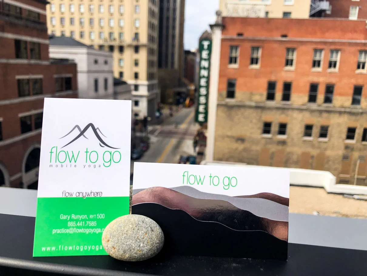 The inspiration - a mix of downward dog yoga pose and mountains (it's located in Knoxville, TN near the Smoky Mountains). The company is an “onsite studio” so it quite literally shows what the brand is about - yoga anywhere and anytime.